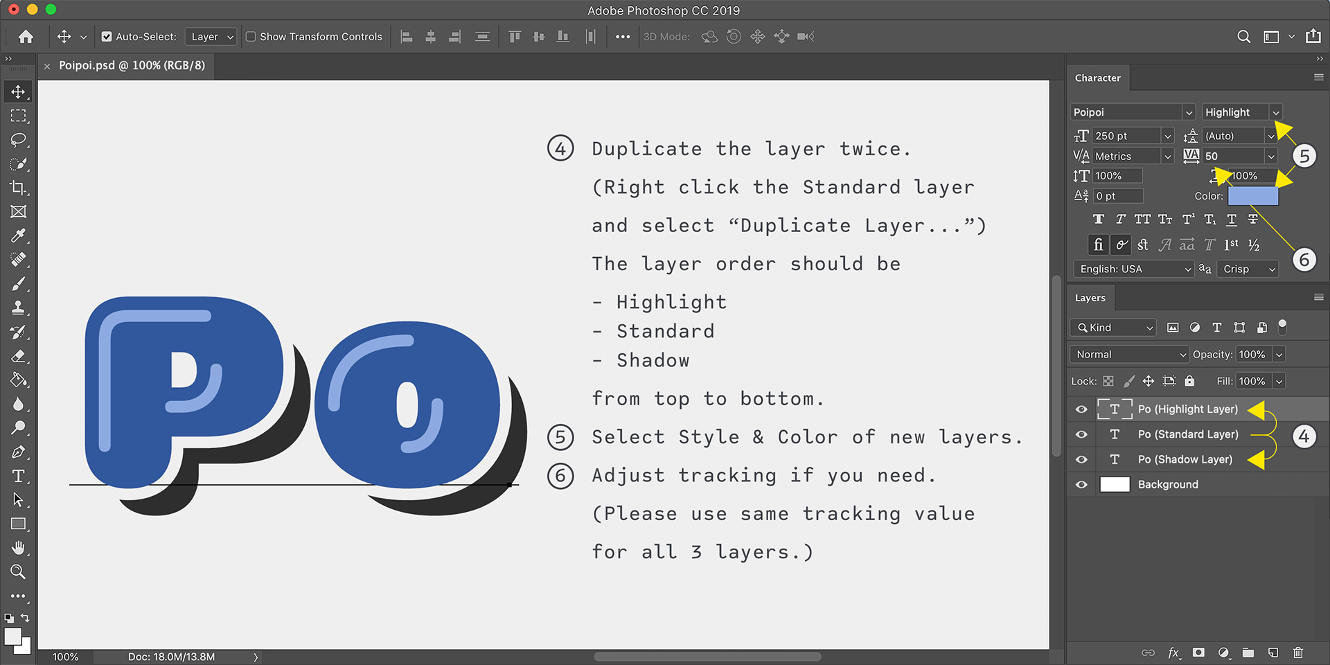 5. Set font-style and color of "Highlight" and "Shadow" layers.