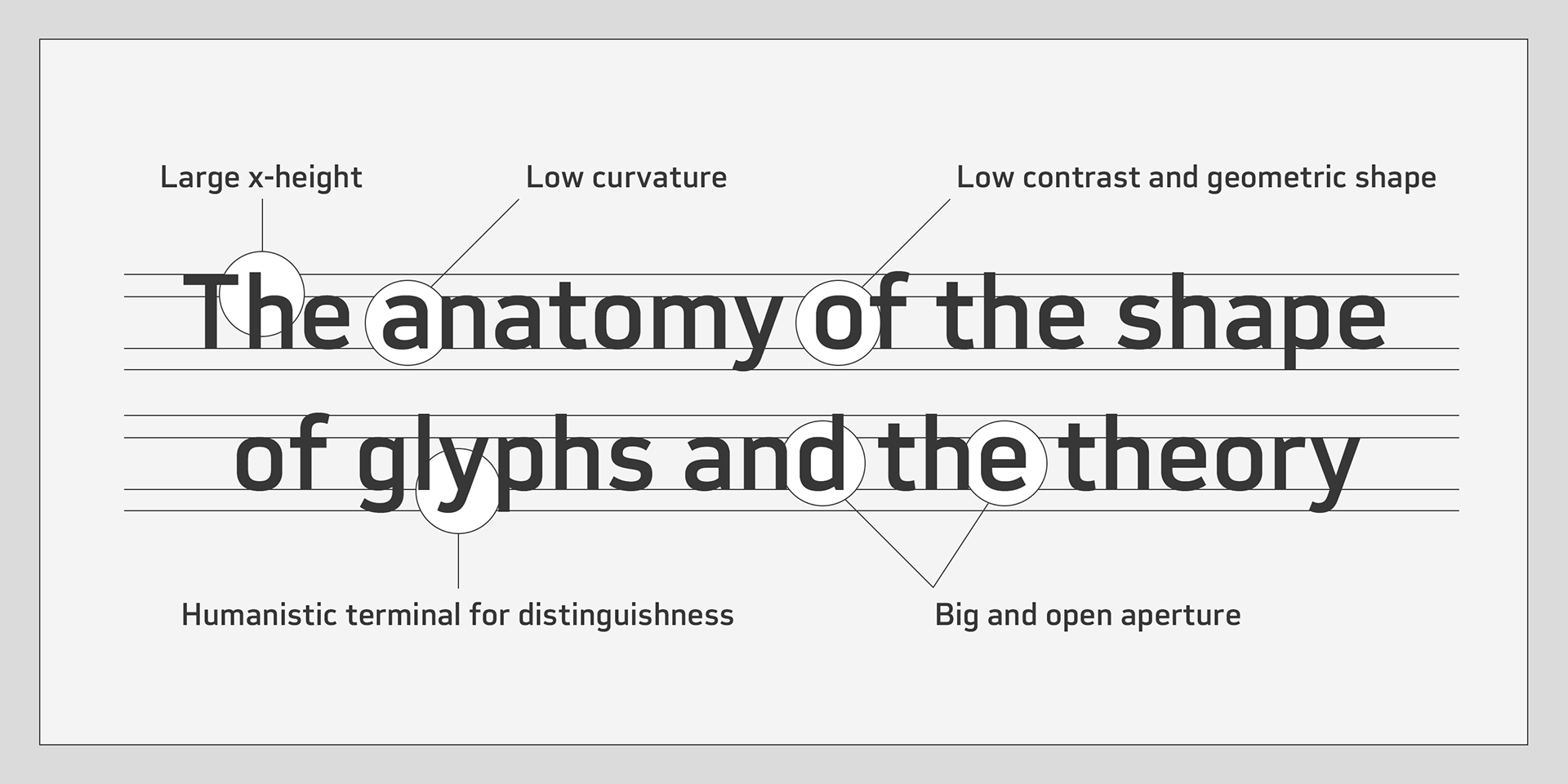 The letterforms have low contrast and geometric shape to be neutral design, large x-height and humanistic terminal to be legible and distinguishable.
